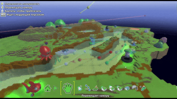 Ребёнок выбирает персонажей, строит пейзажи и настраивает поведение героев с помощью простых команд. Например, можно запрограммировать робота, чтобы он собирал яблоки или убегал от врагов. Всё программирование происходит в формате «если – то» с использованием наглядных иконок — без сложного текста и формул.